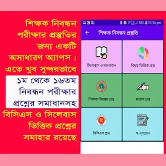Aplikasi ini menawarkan solusi lengkap untuk persiapan ujian pendaftaran guru di Bangladesh. Dengan fokus pada ujian yang diselenggarakan oleh Otoritas Pendaftaran dan Sertifikasi Guru Swasta (NTRCA), aplikasi ini menyediakan akses ke soal-soal ujian dari tahun-tahun sebelumnya dan strategi belajar yang terstruktur. Materi yang disediakan mencakup berbagai subjek seperti Bahasa Bengali, Bahasa Inggris, Matematika, dan Pengetahuan Umum, yang semuanya disusun sesuai dengan kurikulum terbaru.